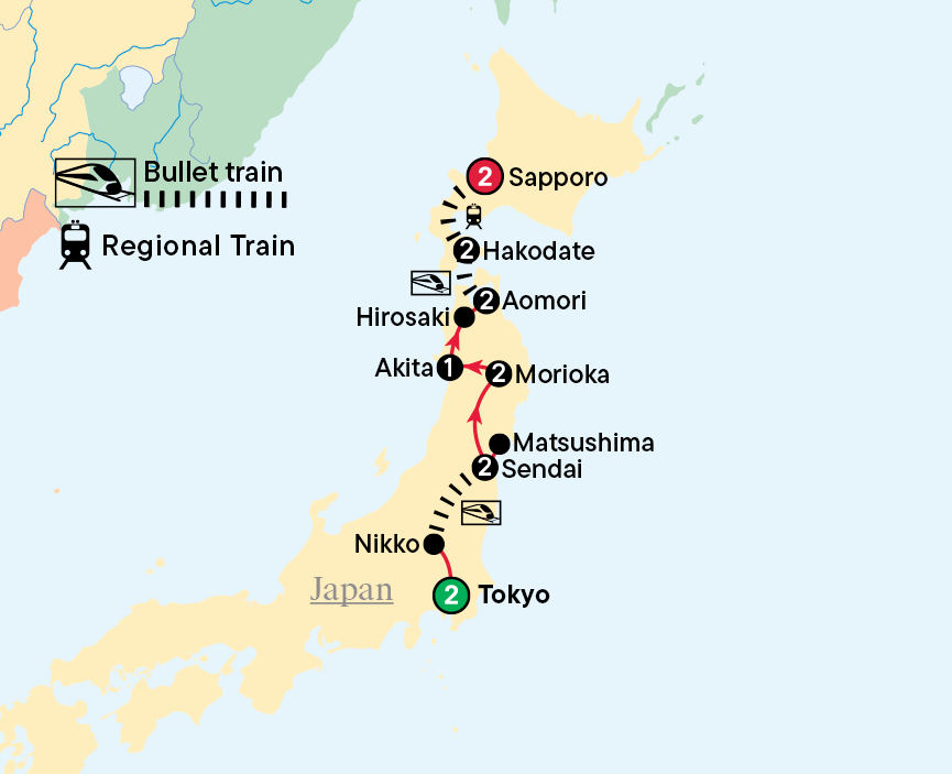 Today we’ll swap the city lights for countryside charm as we head north with our guide into the scenic Tochigi region. Our first stop is Nikkō to visit the remarkable Tōshōgū Shrine, a UNESCO World Heritage-listed site and the final resting place of Tokugawa Ieyasu, the powerful shogun who unified Japan in the early 1600s. This richly decorated shrine sits in a quiet cedar forest and features intricate carvings and detailed architecture, including the well-known “see no evil, speak no evil, hear no evil” monkeys. We’ll pause for lunch at a local restaurant to enjoy some regional flavours before continuing our journey. We will then enjoy a short drive to visit the dramatic Kegon Waterfall, one of Japan’s most celebrated natural sights. The waterfall drops straight from Lake Chūzenji, which we’ll also visit for a lovely photo opportunity. This peaceful lake sits at the foot of Mt. Nantai and was once a popular retreat for diplomats and dignitaries. From there, we make our way to Utsunomiya Station and hop aboard Japan’s famous bullet train for a smooth, high-speed ride to Sendai. Known as the City of Trees, Sendai welcomes us with its broad, leafy boulevards and relaxed atmosphere. From the station, it’s just a short walk to our hotel, where we’ll settle in and rest up for tomorrow’s discoveries.